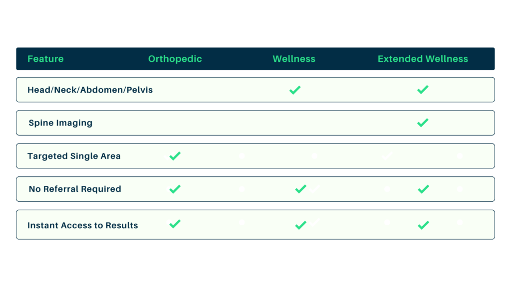 Whether it’s a Full Body Scan or a specific area of concern, we’ll help you choose the right scan and schedule an appointment that works for you—no doctor’s referral needed.